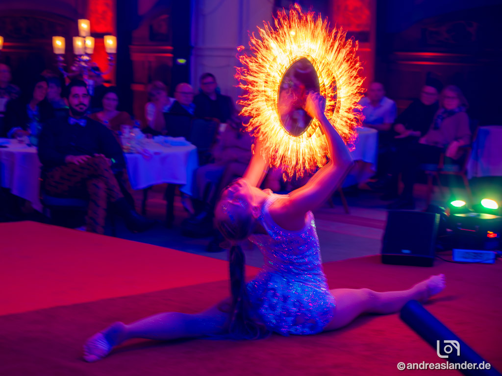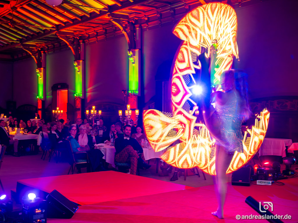Das Herzstück des Abends war natürlich das Showprogramm. Akrobatin Cara Julienne, Bauchredner Roy Reinker, Zauberer Peter Valance und Tänzerin Fräulein Fabelwesen entführten unsere Gäste in eine Welt voller Unterhaltung, Staunen und Spaß. Für uns als Veranstalter gab es kaum etwas Schöneres, als die begeisterten Gesichter unserer Gäste zu sehen. Wenn die Freude und Begeisterung so spürbar sind, weiß man: Alle Vorbereitungen und die harte Arbeit haben sich gelohnt.